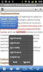 Now, your Android smartphone can do more than e-mail, music, and games. With Quickoffice Pro, you get a powerful office suite that lets you open and edit Microsoft® Office documents, spreadsheets, and presentations, as well as, annotate PDF files – online and offline. PLUS, our included file manager works seamlessly with your email attachments, locally saved files, and cloud storage accounts so you can work anytime and anywhere.
